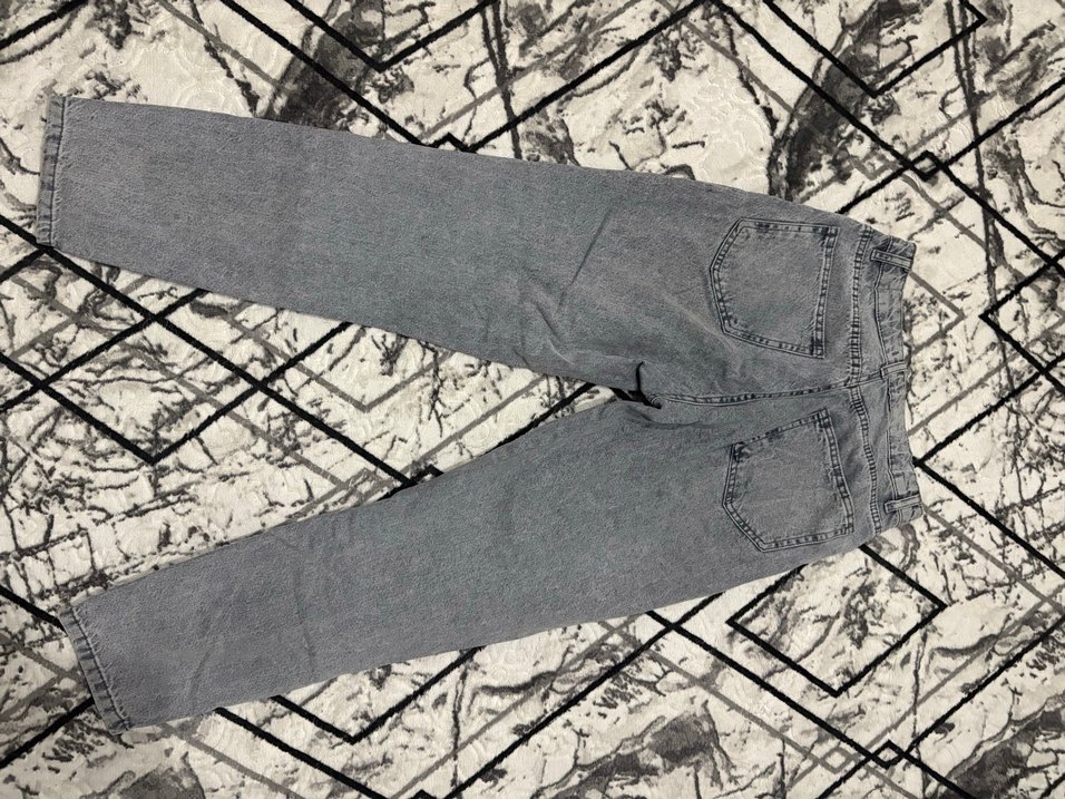 Gri bağlama desenli , salaş kesim kadın kot pantolon. Sokak tarzı ve günlük kullanım için uygundur.