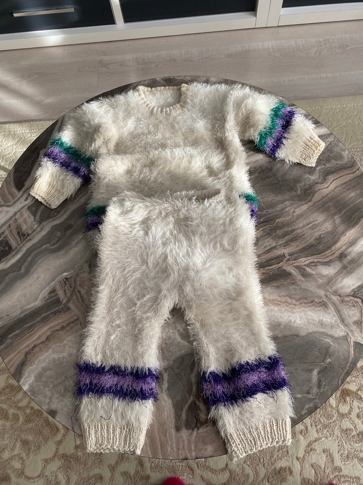 Kürklü ve bağlama desenli, gri tonlarında bebek kız tulumu. Bisiklet yaka ve kollar ile paçalarda rahat lastik detayları bulunur. ❄️