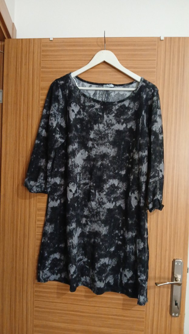 Gri Bağlama Desenli Salaş Hamile Tunik