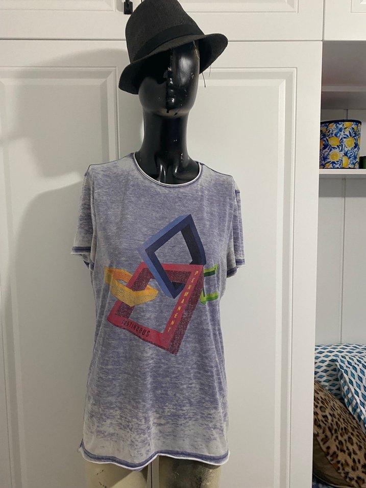 Gri bağlama desenli, bol kesim, kısa kollu tişört, sokak stiline uygun ve rahat günlük kullanım için ideal. S beden t boz