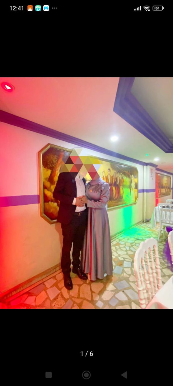 Yüksek yakalı, uzun kollu, drapeli, bağlama desenli açık gri kadın abiye elbise. Düz kesim ve geleneksel tarzda, düğün için uygundur. 40 beden