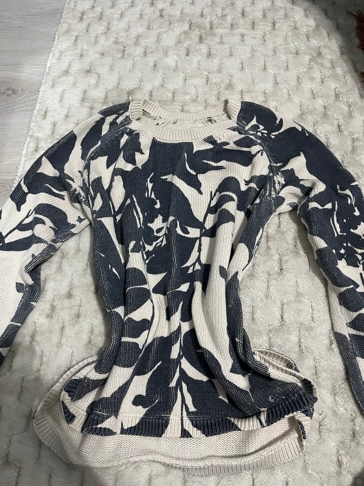 Gri Bağlama Desenli Uzun Kollu Triko Kazak