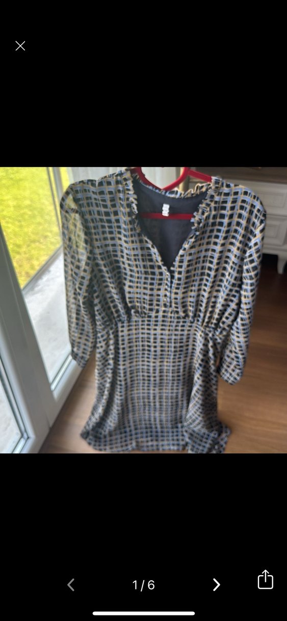 Gri bağlama desenli, V yakalı, düğmeli, uzun kollu, midi uzunlukta bol kesim hamile tunik. Günlük kullanıma uygun.