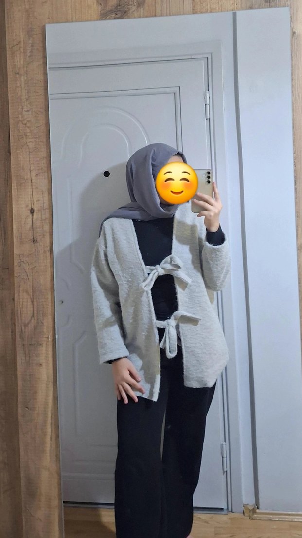 Gri baglamalı yumuşak dokuya sahip hırka.