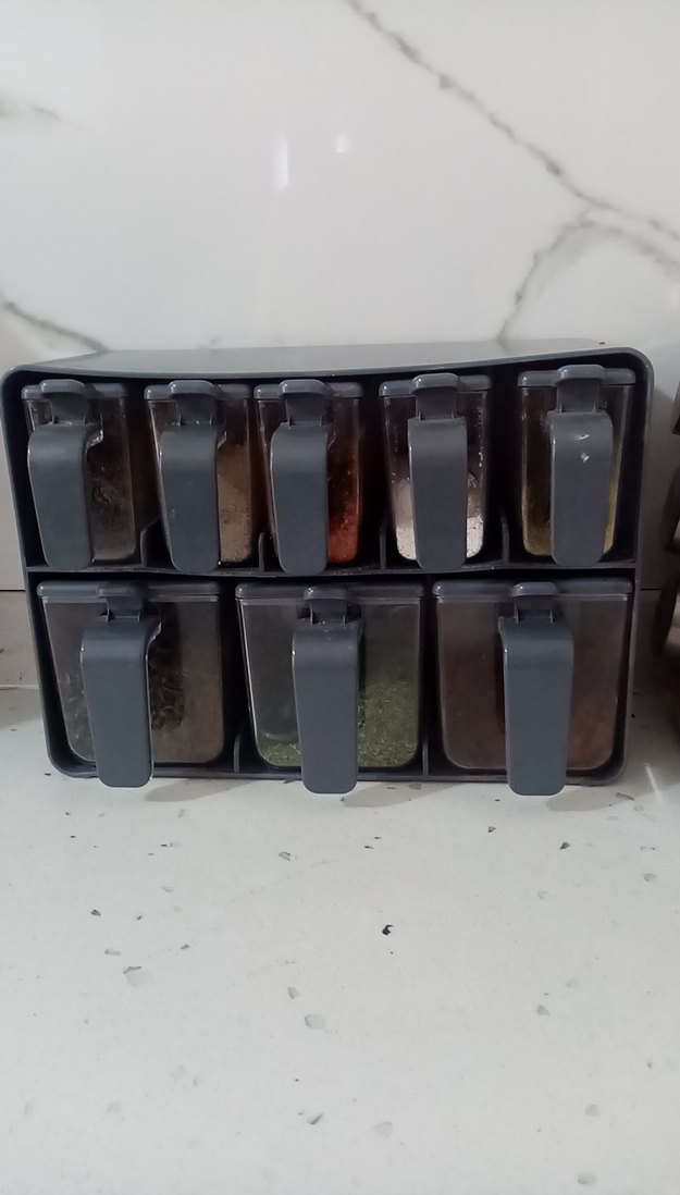 Diger marka gri. Baharat takımı organizeri, kullanışlı klipslerle çoklu bölmeler sunar. Kompakt tasarımı malzemeleri düzenli tutar.