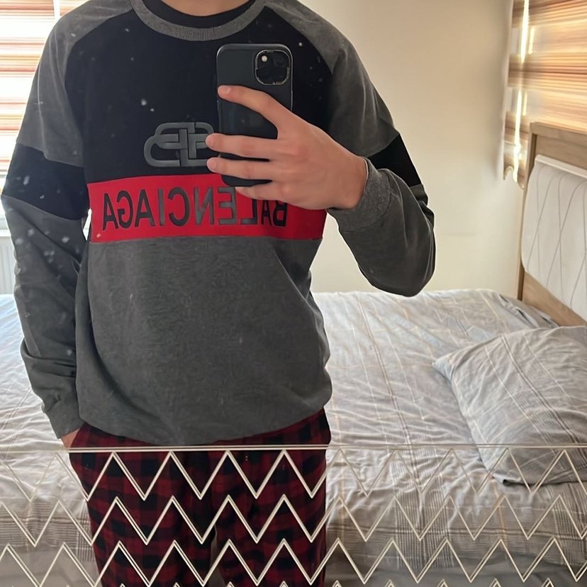 Pamuk kumaştan, fitted kesim ve bisiklet yaka detaylı gri renkli, Balenciaga baskılı erkek sweatshirt. Uzun kollu, günlük rahat stil için uygun. Xxl yazdıgına bakmayın ben m beden giyorum bana oluyor boy 183 kilo 69 ürün orjinaldir eski sezon
