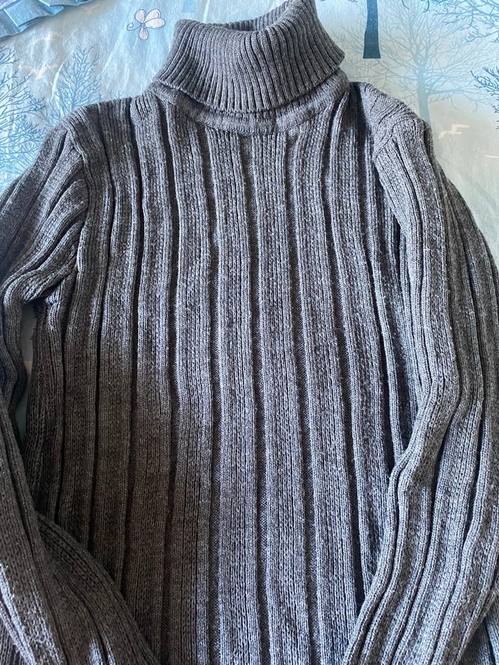 Gri renkte, yumuşak yün kumaştan üretilmiş, balıkçı yakalı ve uzun kollu, triko kazak. Rahat ve günlük kullanım için uygundur.