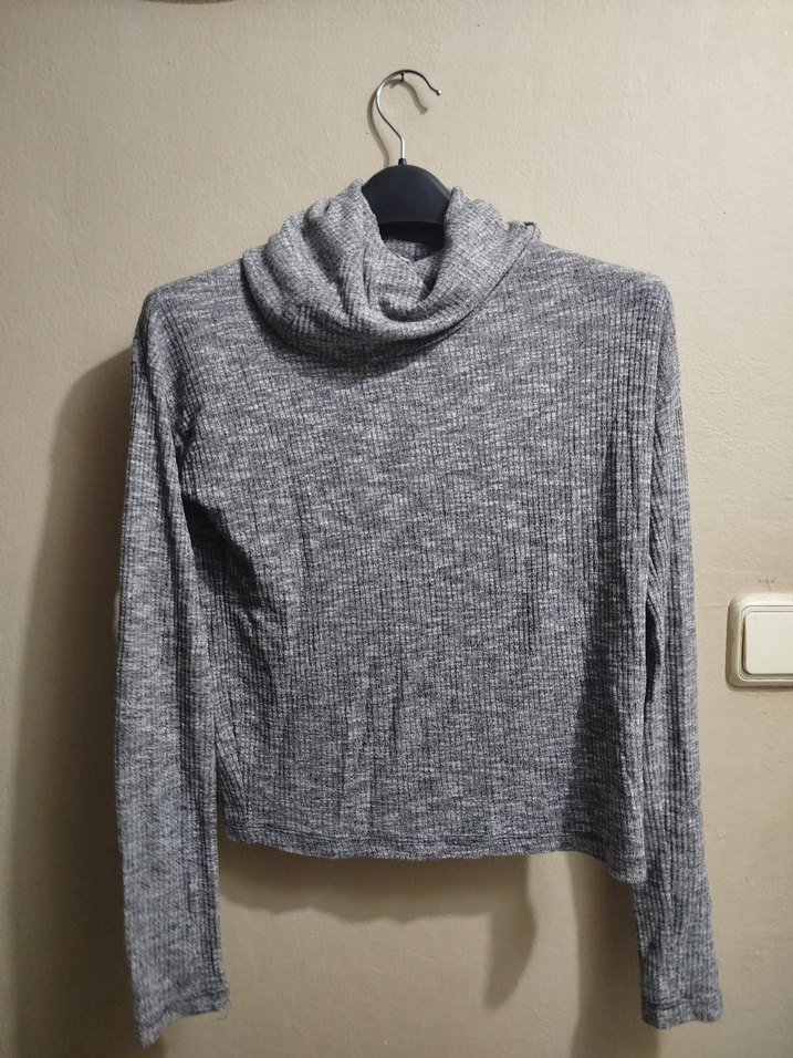 Gri renkli, balıkçı yaka ve uzun kollu, ince triko dokusuyla rahat ve şık bir kadın kazak. Günlük kullanıma uygundur.