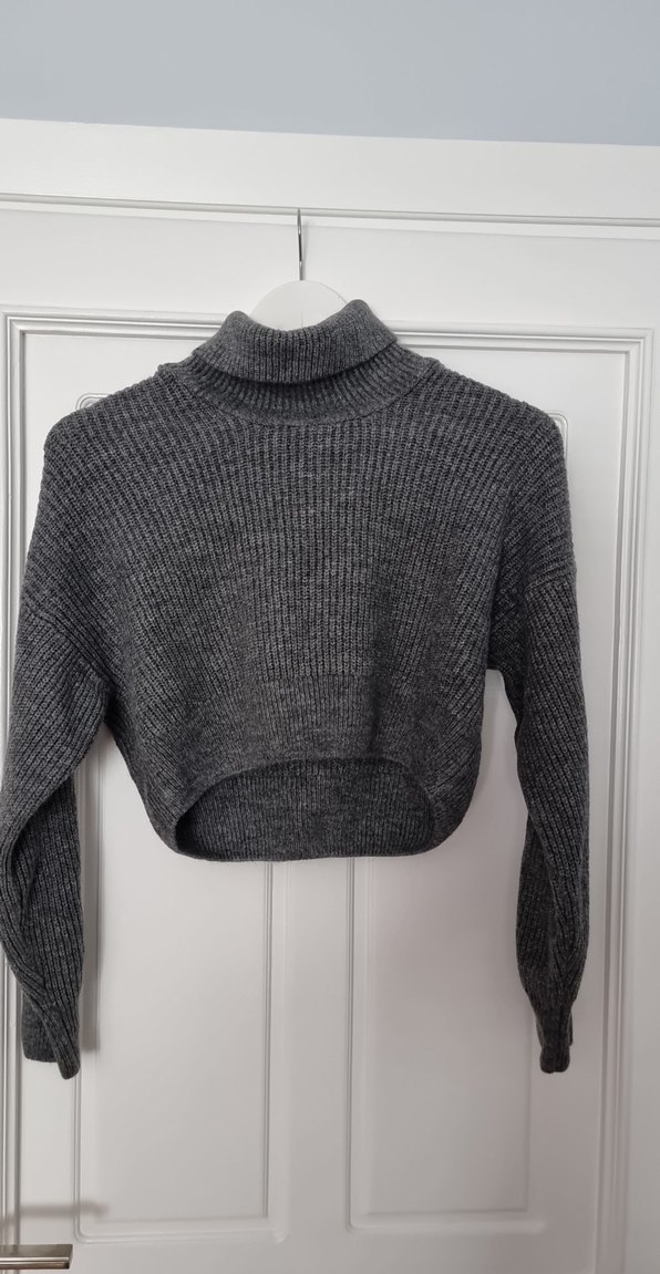 Gri Balıkçı Yaka Örgü Crop Kazak