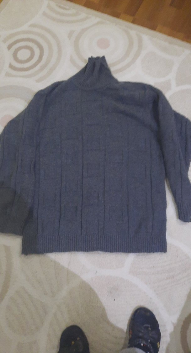Gri renkli, balıkçı yaka ve uzun kollu örgü yün kazak, rahat ve bol kesimiyle günlük kullanım için uygundur.