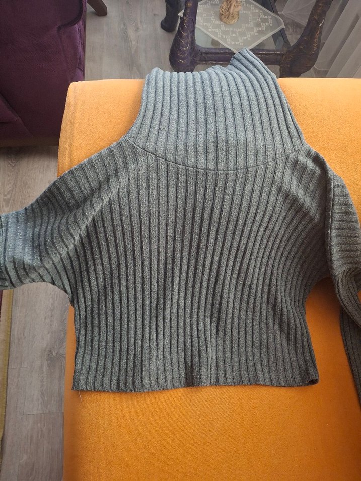 Gri balıkçı yaka, uzun kollu, vücuda oturan örgü kadın kazak. Düz renk ve nervürlü dokusu ile rahat ve günlük kullanıma uygun.