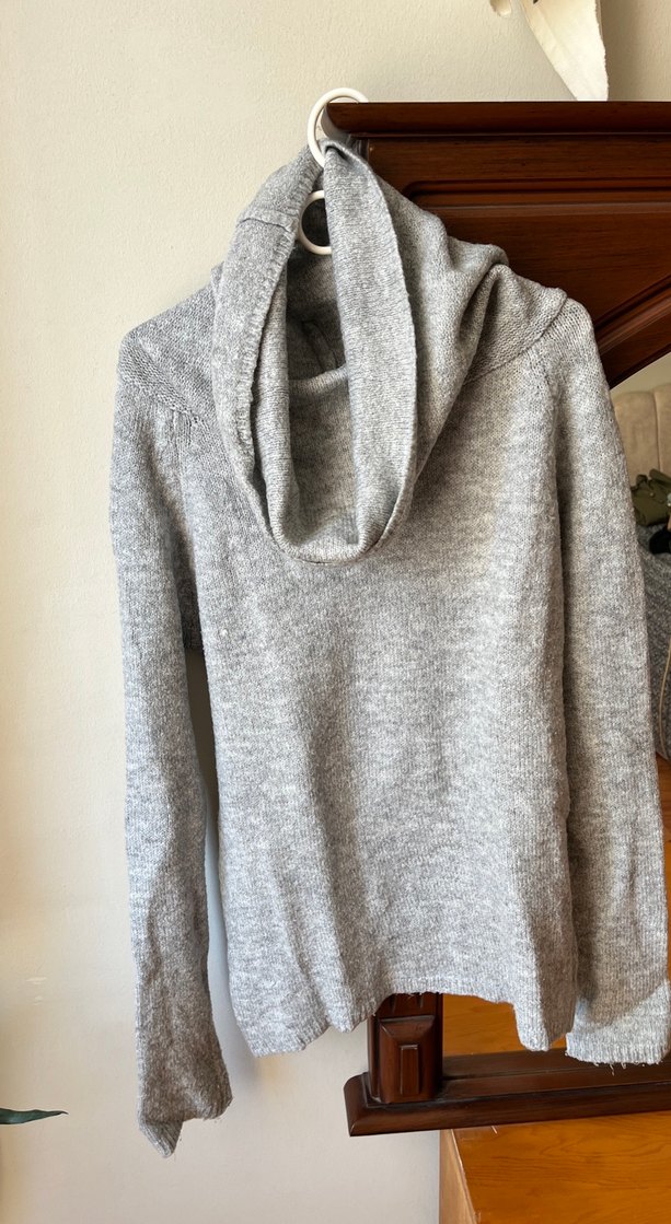 Gri renkli, balıkçı yaka ve uzun kollu örgü kadın kazak, rahat ve modern bir tarz sunar. Günlük kullanım için uygun, bol kesim ve normal uzunluktadır.