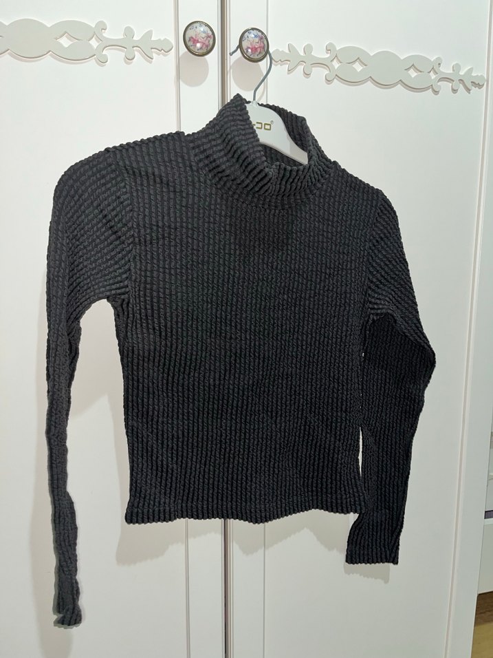 Gri renkli, balıkçı yaka ve uzun kollu, vücuda oturan triko kazak. Rahat ve sokak stiline uygun, günlük kullanıma ideal.
