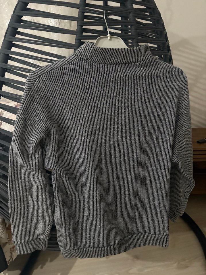 Gri renkli, yün triko kadın kazak, balıkçı yaka ve uzun kollu, rahat kesim ile konforlu ve günlük kullanıma uygun.