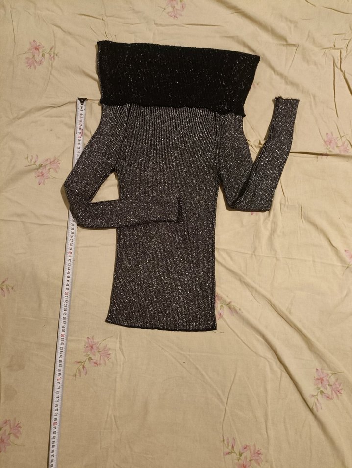 Gri renkte, balıkçı yakalı ve uzun kollu, sentetik kumaştan örülmüş, normal midi boyda, desen içermeyen dar kesim kazak.Deformesiz sorunsuz. Ölçüleri fotolarda.
