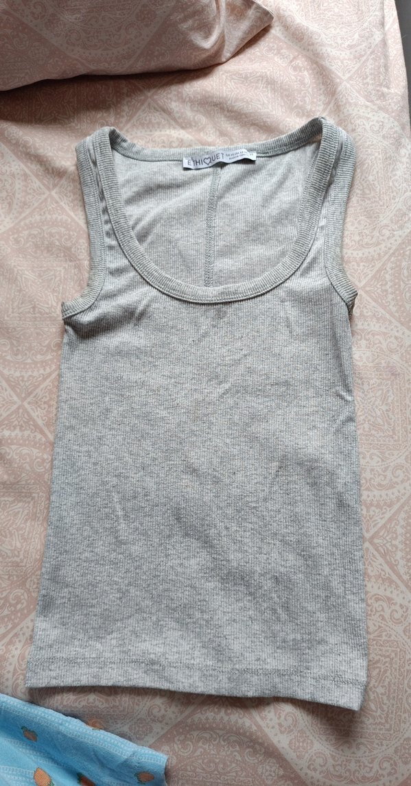 Gri renkli, kolsuz ve fitted kesim kadın atlet. Yumuşak sentetik kumaştan üretilmiş, günlük kullanıma uygun sade ve şık bir tasarım.