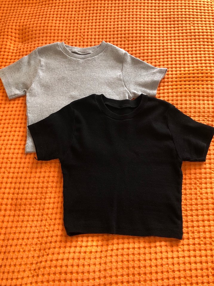 Gri Basic Kısa Kollu crop 2li