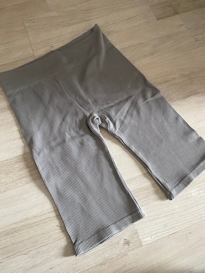 Gri renkli, pileli ve kısa kesim tayt kaşkorse kumaş