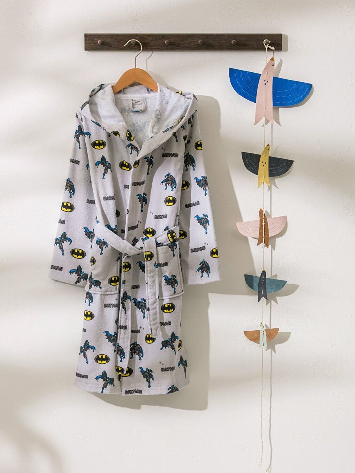 Gri Baskılı Batman Erkek Çocuk Bornoz