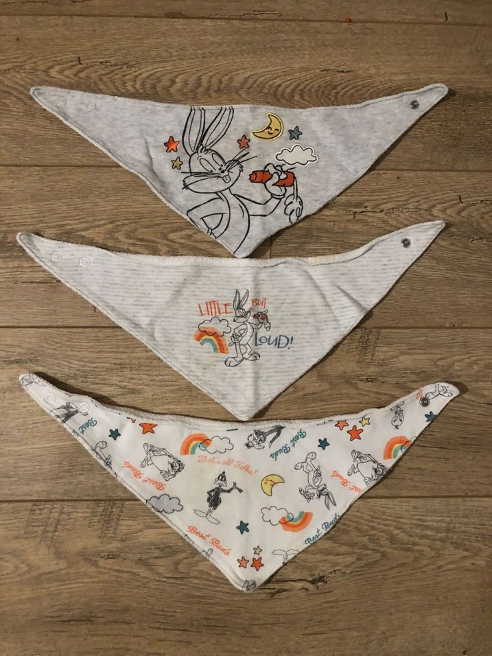 Üçlü gri bebek önlüğü seti, baskılı çizgi film desenli, kolay çıtçıt kapanmalı. Yumuşak ve rahat kumaşlı. neredeyse hiç kullanılmadı. temiz. yurtdışından hediye olarak geldi.