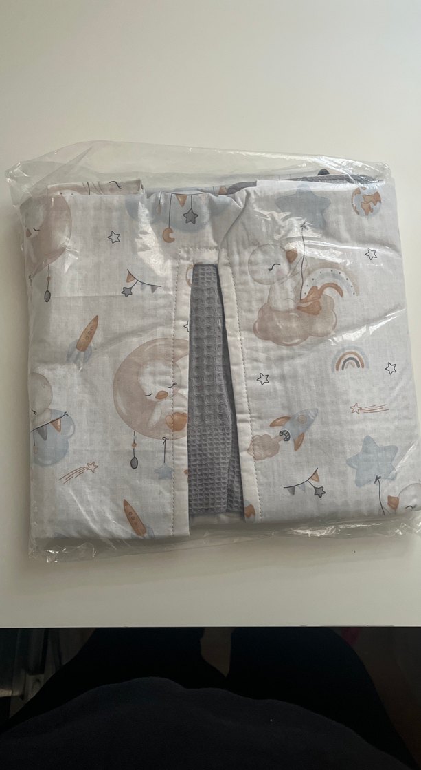 Yumuşak sentetik kumaştan yapılmış, baskılı desene sahip gri çocuk uyku aksesuarı konfor ve eğlenceli tasarım sunar. 2.resim temsilidir