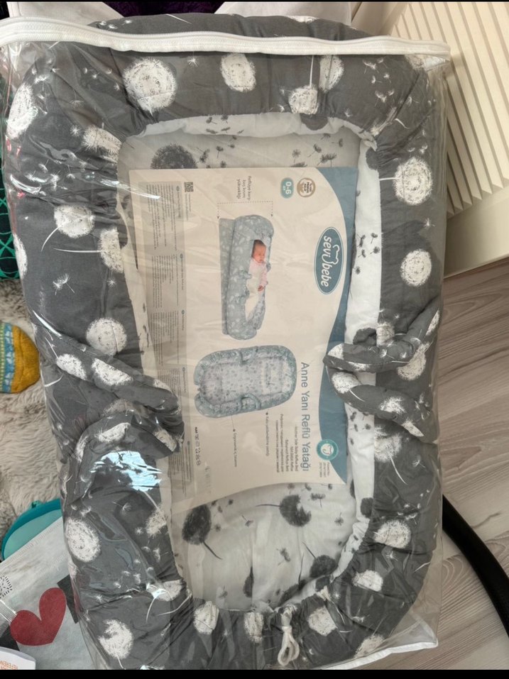 Baskılı desenli gri bebek reflü yatağı, yumuşak kumaştan üretilmiştir ve bebekler için rahat bir dinlenme alanı sunar. ️