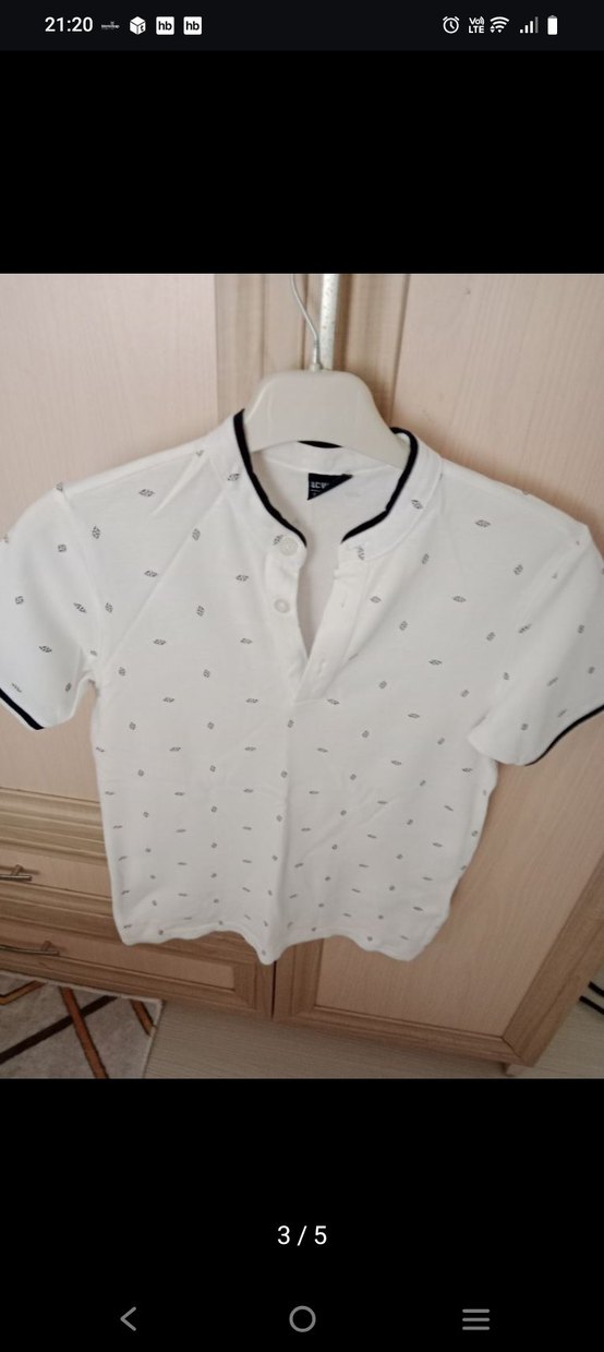 Pamuk kumaştan yapılmış, gri baskılı, düğmeli ve yakalı beyaz kısa kollu, dar kesim polo tişört.