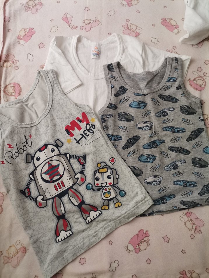 Gri tonlarında, baskılı robot ve araba desenlerine sahip üçlü çocuk atlet Rahat ve günlük kullanım için uygundur.