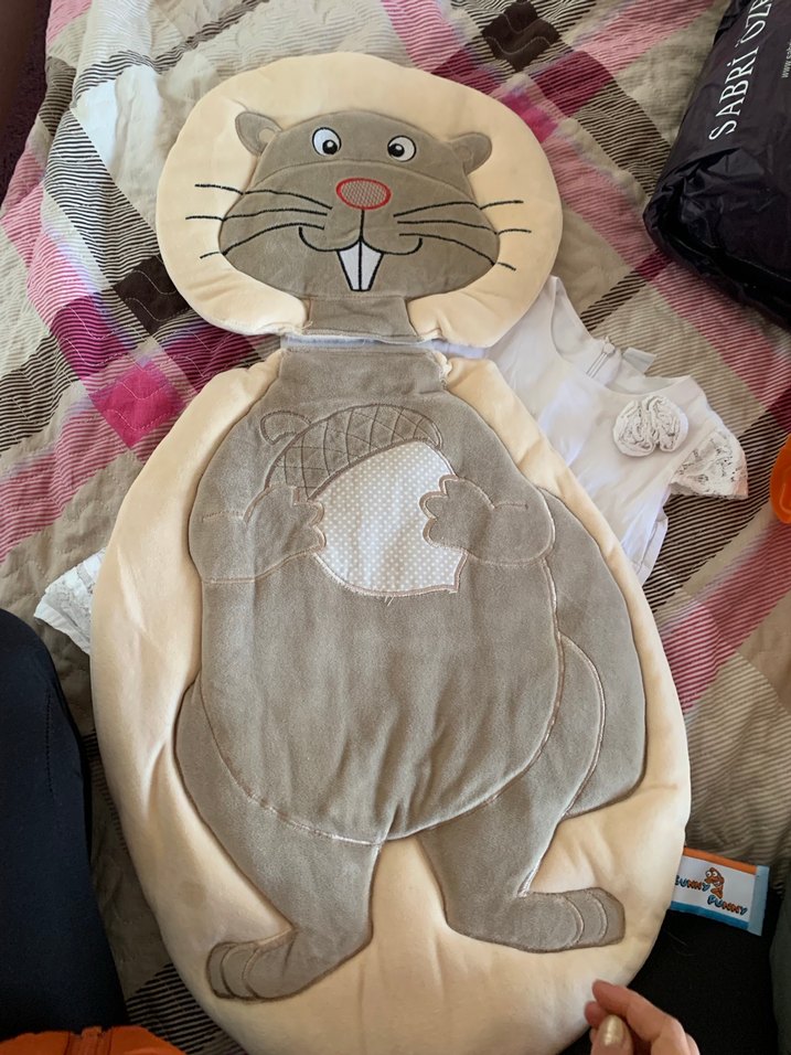 Yumuşak ve sıcak kumaştan yapılmış, gri renkli baskılı hayvan desenli çocuk uyku minderi. Rahat uyku sağlar alt açma kullanılmadı.