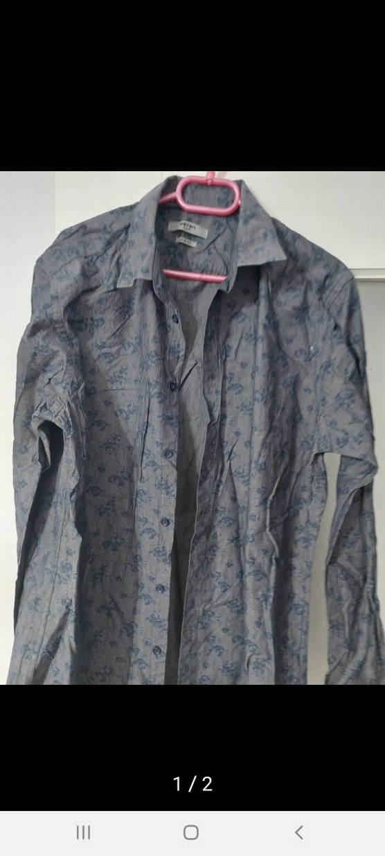 Gri baskılı denim kumaştan yapılmış, uzun kollu, yakalı ve düğmeli erkek gömleği. Rahat kesim ve normal boyda, günlük sokak stiline uygun.