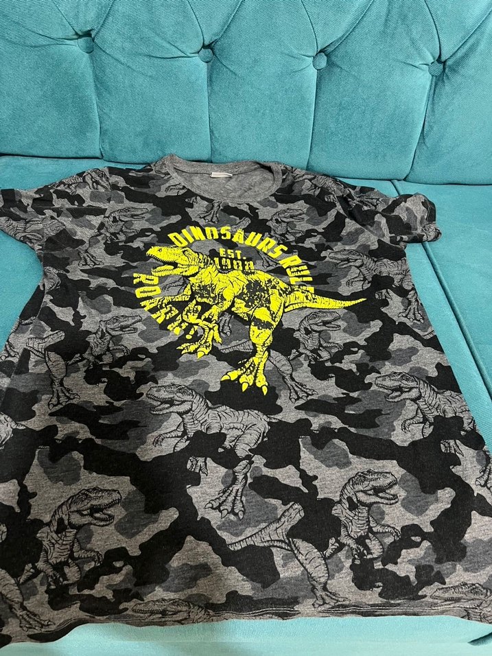 Gri Baskılı Dinozor Desenli Erkek Tişört