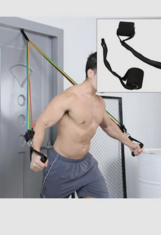 Gri baskılı direnç bantları, tutacaklar ve ayak bileği kayışları ile güç ve esneme egzersizleri için uygundur. ️