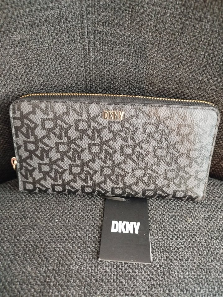 Gri baskılı DKNY kadın cüzdanı, hiç kullanılmadı, etiketli