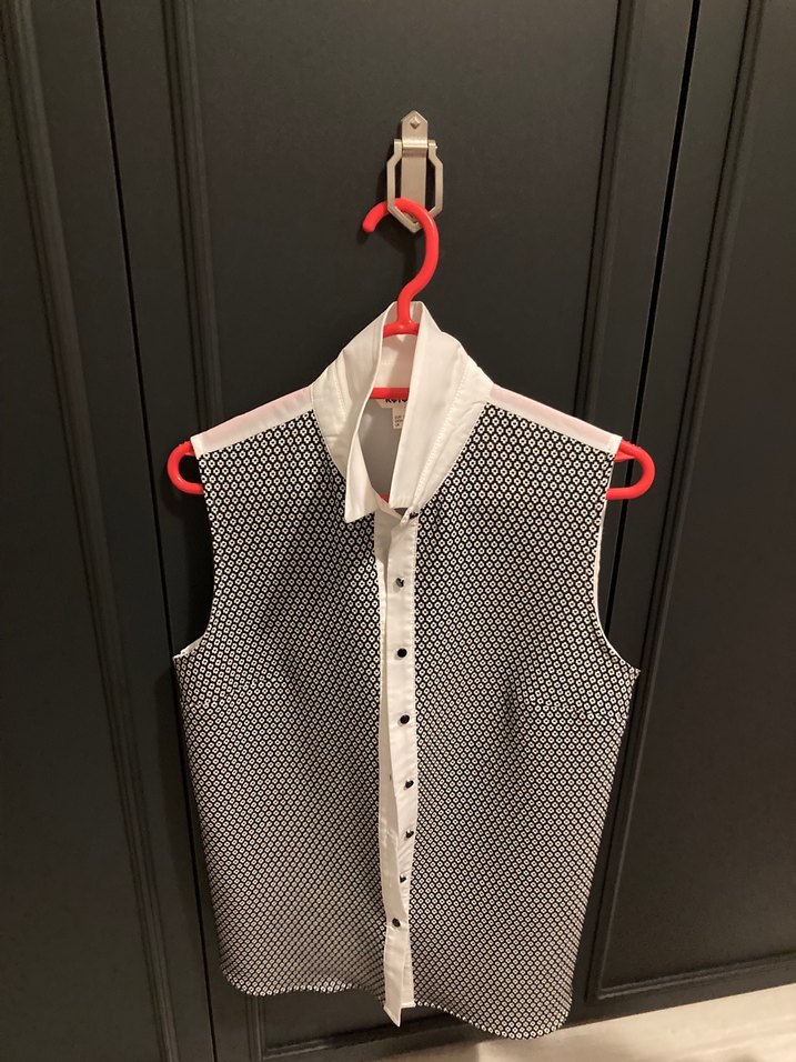 Gri baskılı, kolsuz, düğmeli ve yakalı kadın gömleği. Normal boyda ve regular fit kesime sahiptir, günlük kullanıma uygundur.