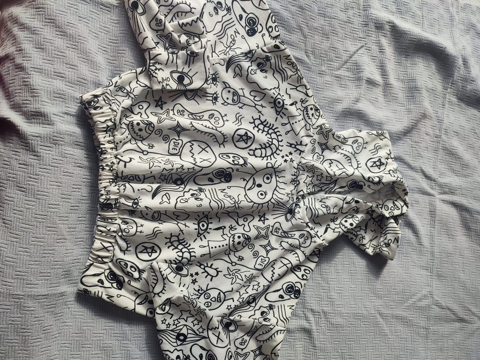 Gri renkte, baskılı ve düğmeli detaylara sahip sokak tarzı köpek kıyafeti, rahat ve şık bir görünüm sunar.