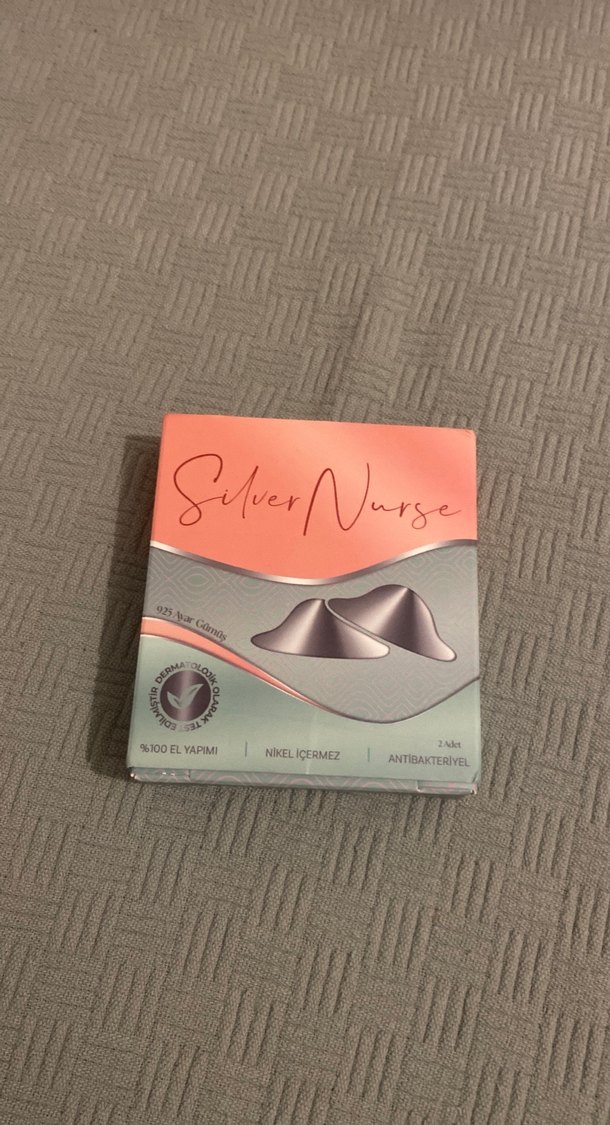 Silver Nurse gri baskılı emzirme göğüs pedleri antibakteriyel koruma sağlar, %100 el yapımıdır ve nikel içermez. 2 adet pakette.