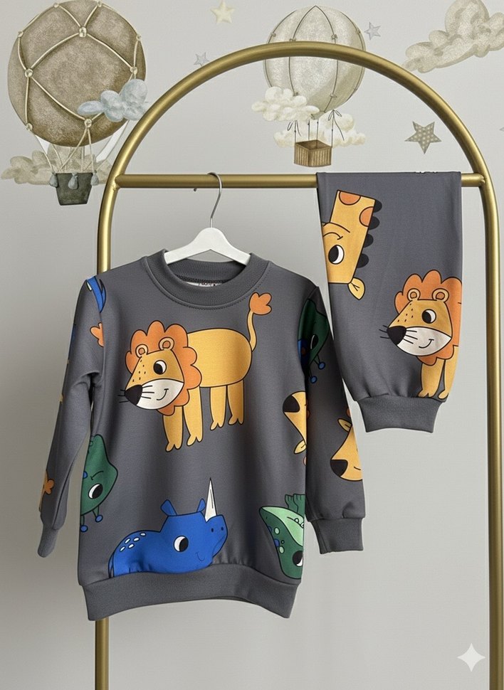 Aslanlı pijama takımı lütfen beden sorunuz 3 iplik dijital kumaş Esnek kalıp 3/4-4/5-5/6-6/7-7/8 yaş arası bedenleri mevcuttur.