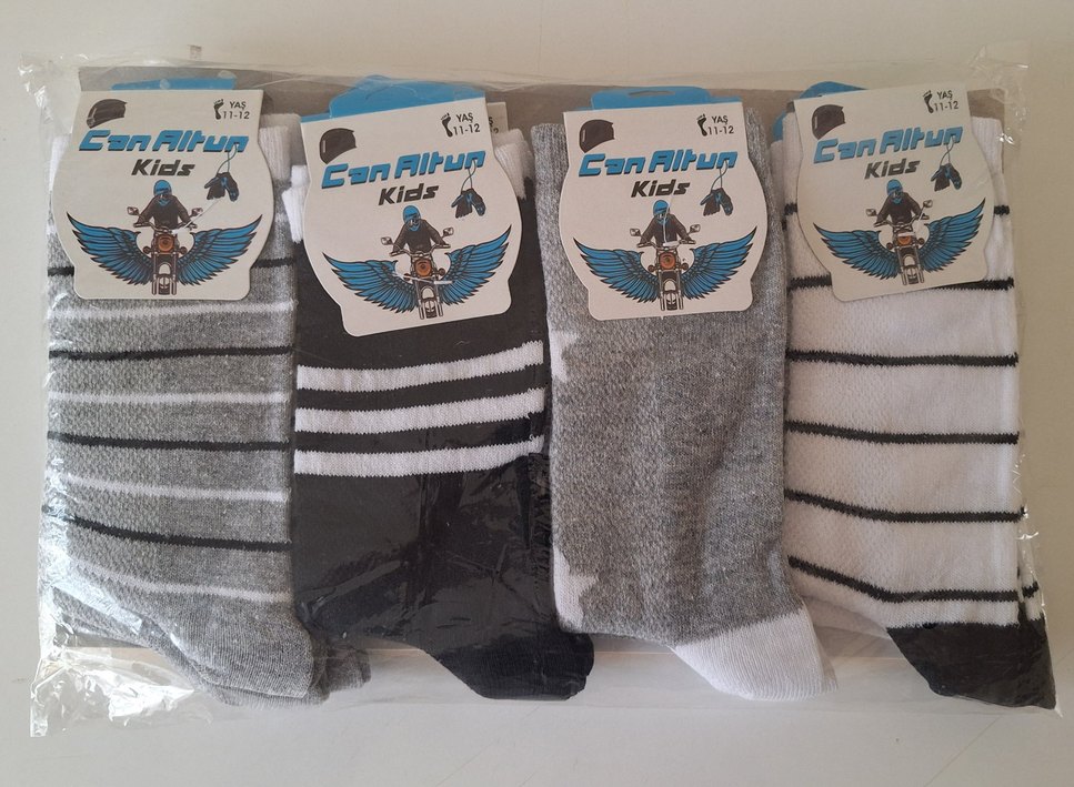Can Altur Kids markalı, baskılı desenli gri tonlarında erkek çocuk çorapları, 11-12 yaş için uygundur. 11 ÇİFT SIFIR ÜRÜNDÜR
