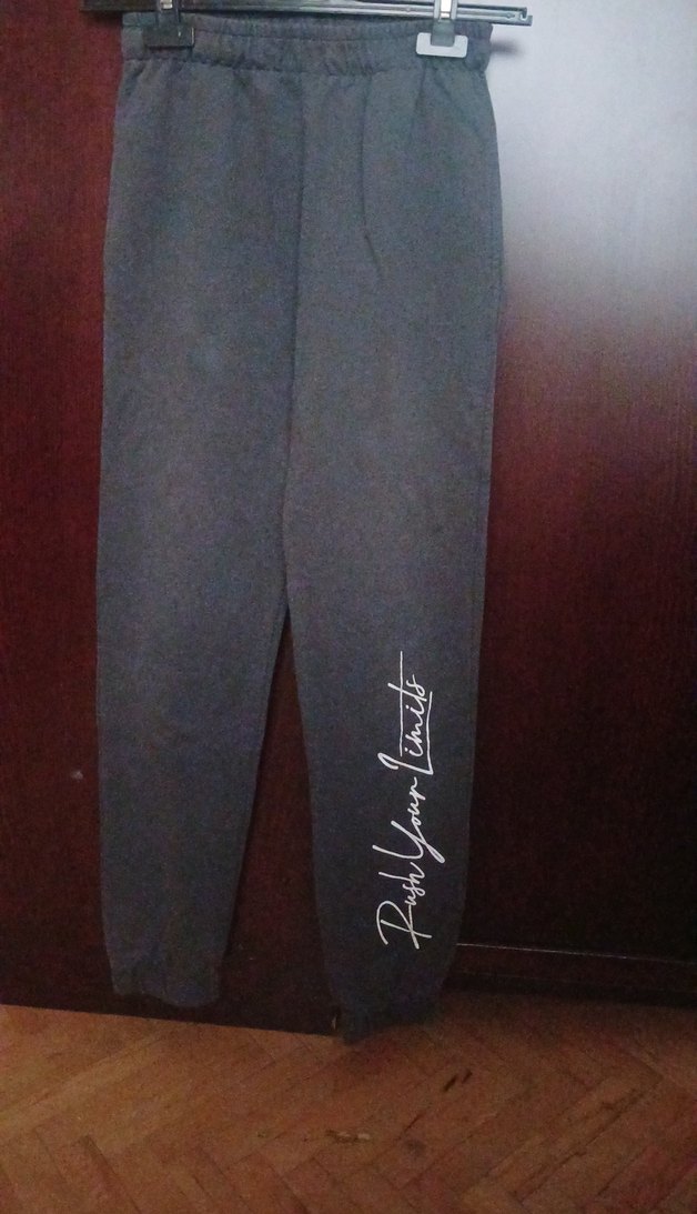 Gri denim kumaştan, baskılı ve fermuarlı cepli, bol kesim erkek çocuk jogger eşofman altı.