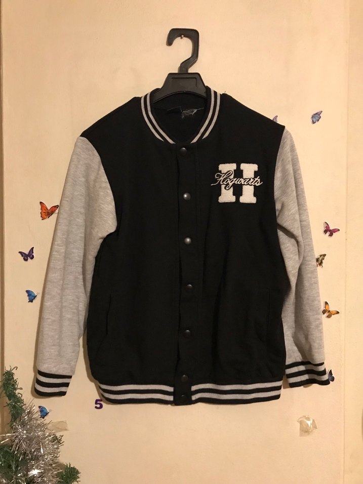 Ufak tefek tüylenmeleri var pamuklu olduğu için ama kusur sayılmaz. Düğmeli, baskılı ve gri kolları olan erkek çocuk ceket. Siyah gövde, çizgili manşet ve yakaya sahip, bol kesim. Rahat sokak giyimi için uygun.