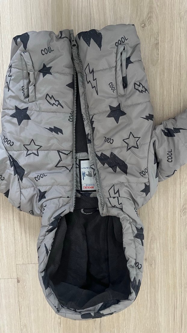 Gri renkli, baskılı ve fermuarlı erkek çocuk montu. Suni kumaştan yapılmış, kesimi dar ve yaka tipi kesimdir. Sokak stiline uygun bir tasarım. ⚡