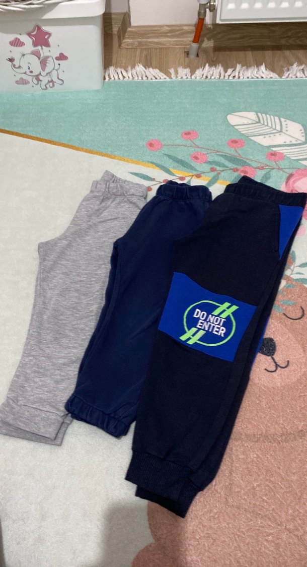 Pamuklu, gri renkli, elastik bel ve baskılı desenli, bol kesim erkek çocuk rahat pantolonu.