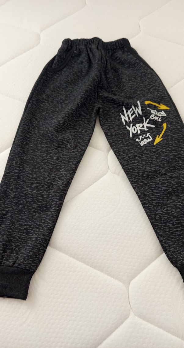 Gri, baskılı ve elastik bel bantlı erkek çocuk eşofmanı. Rahat kesimi ve yumuşak, sıcak kumaşıyla sokak modasına uygun. ️