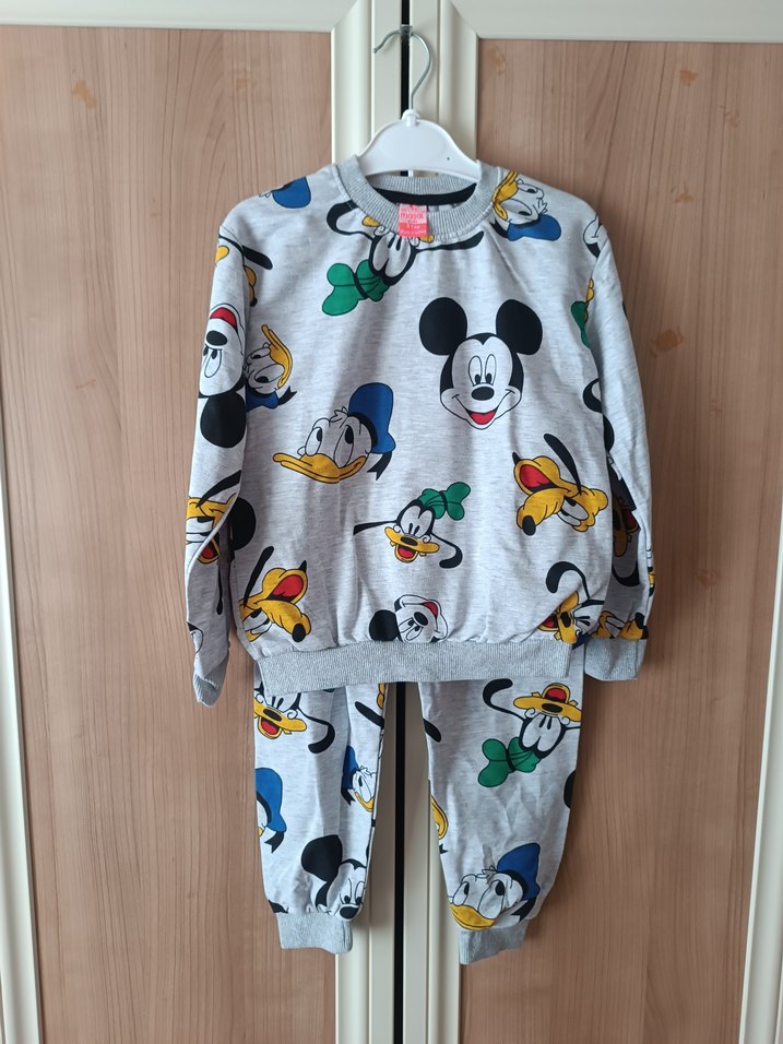Gri renkte, uzun kollu ve yuvarlak yakalı, yumuşak örme kumaştan yapılmış, renkli çizgi film baskılı, rahat kesim erkek çocuk sweatshirtü.