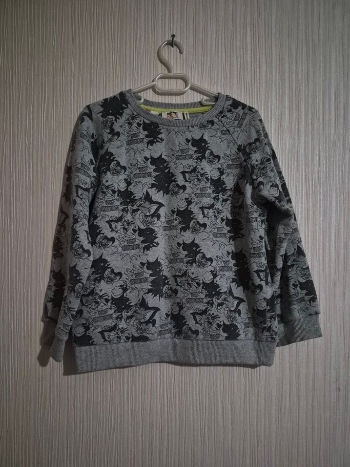 Gri renkli, uzun kollu ve yuvarlak yakalı erkek çocuk sweatshirtü. Örgü dokulu tekstil malzemeden üretilmiş, baskılı desenlidir ve rahat bir kesime sahiptir.