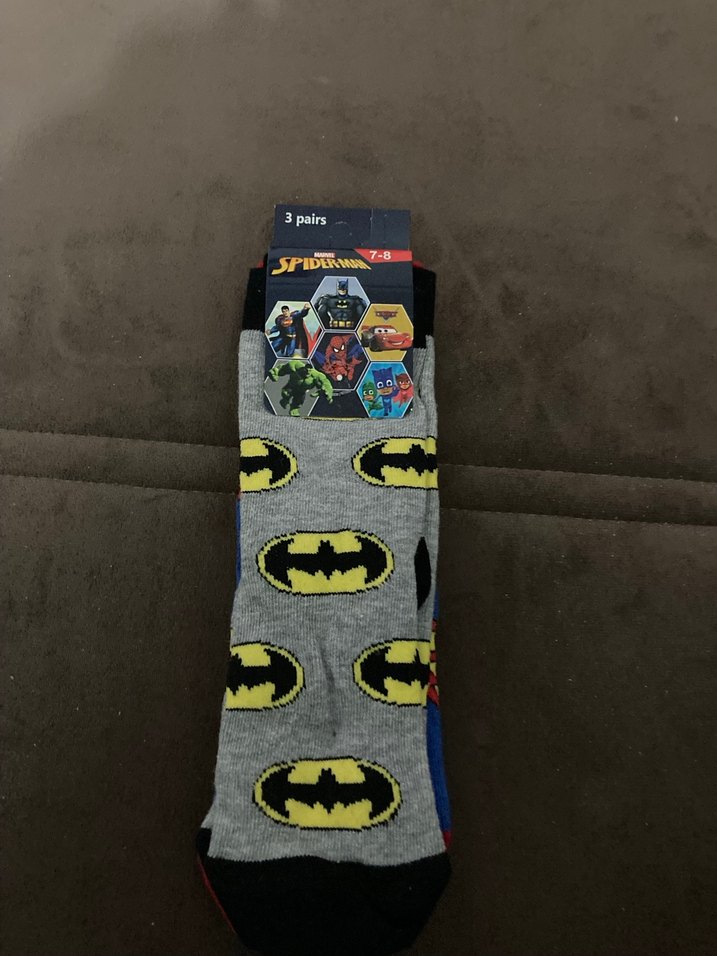 Gri renkte, Batman baskılı erkek çocuk çorapları, 3 çift olarak satılmaktadır. 7’8 yaştir