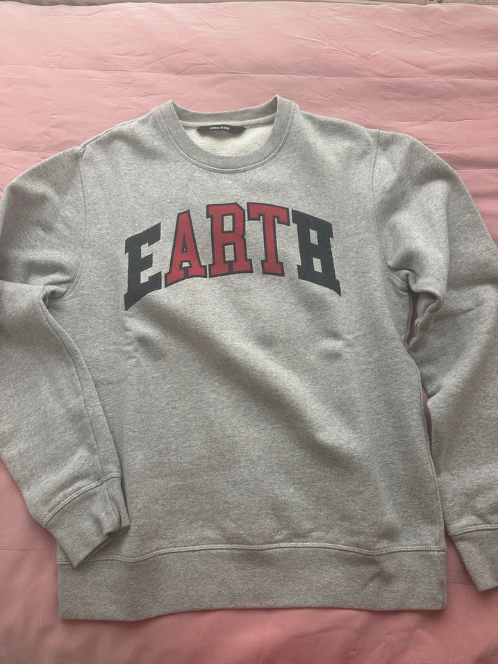 Gri renk, uzun kollu ve yuvarlak yakalı sweatshirt, yumuşak ve sıcak kumaştan. Baskılı 'EARTE' deseniyle rahat ve şık görünüme sahip. Temiz. S bedene göre biraz daha bol m gibi