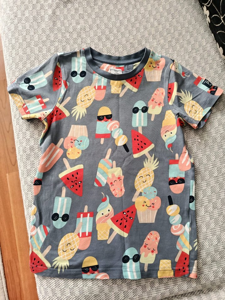 Gri renkli, kısa kollu ve yuvarlak yakalı erkek tişörtü, rahat kesimi ve yumuşak örme kumaşıyla renkli pop kültür baskılarına sahip.