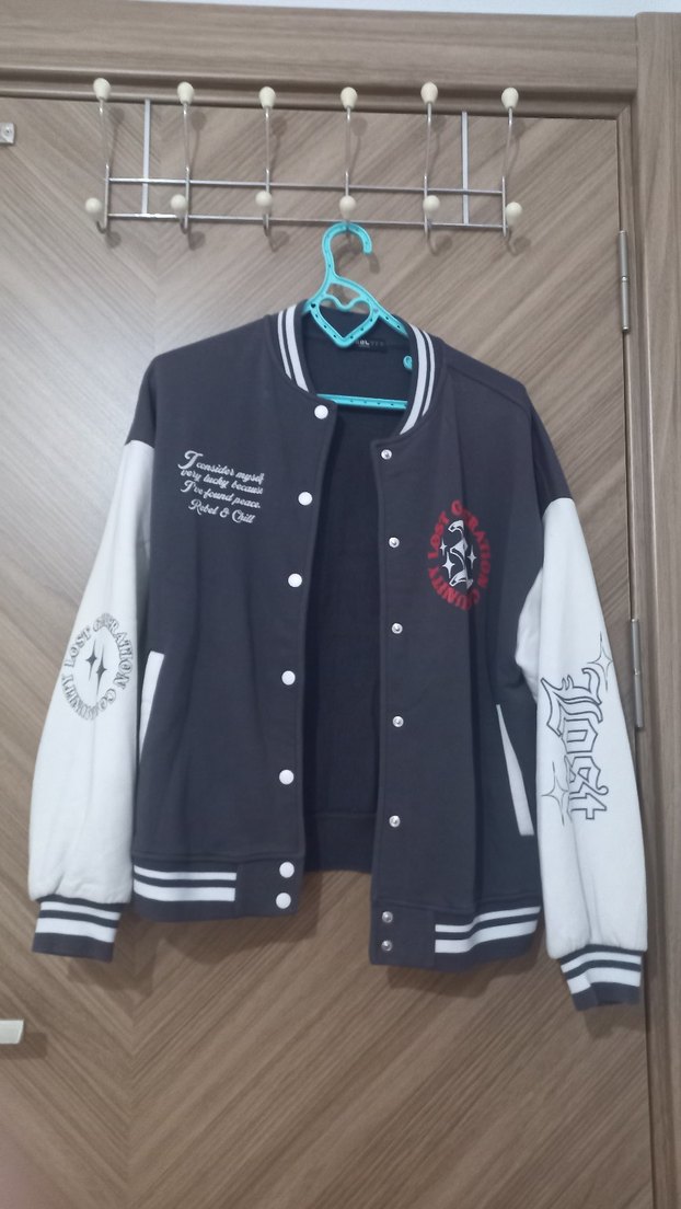 Gri renkli, uzun kollu ve düğmeli erkek ceket, baskılı desenlere sahip. Rahat kesimi ve yumuşak kumaşıyla günlük spor tarzına uygun.