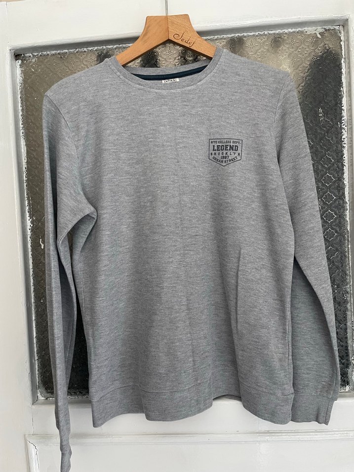 Gri Baskılı Erkek Sweatshirt